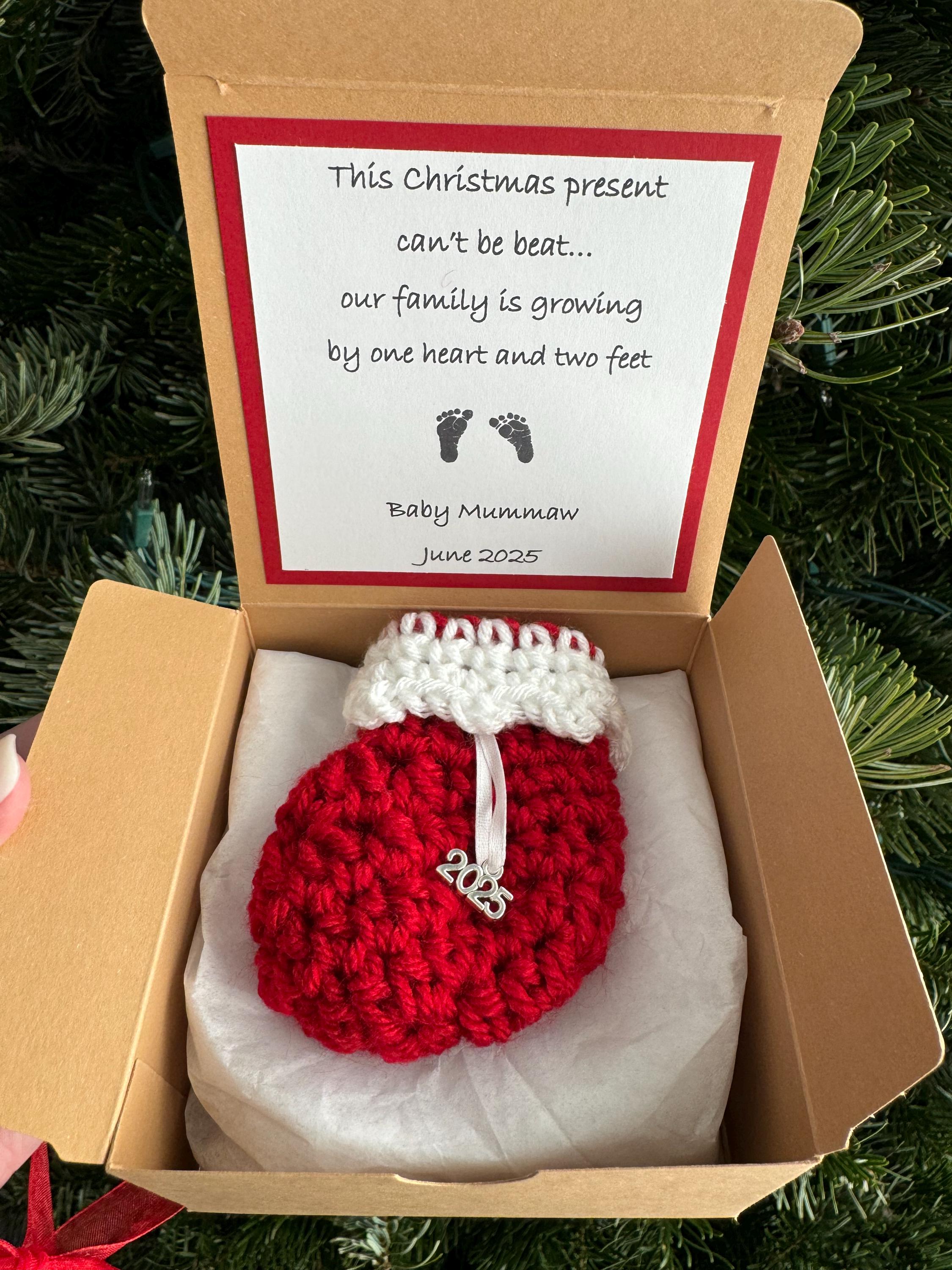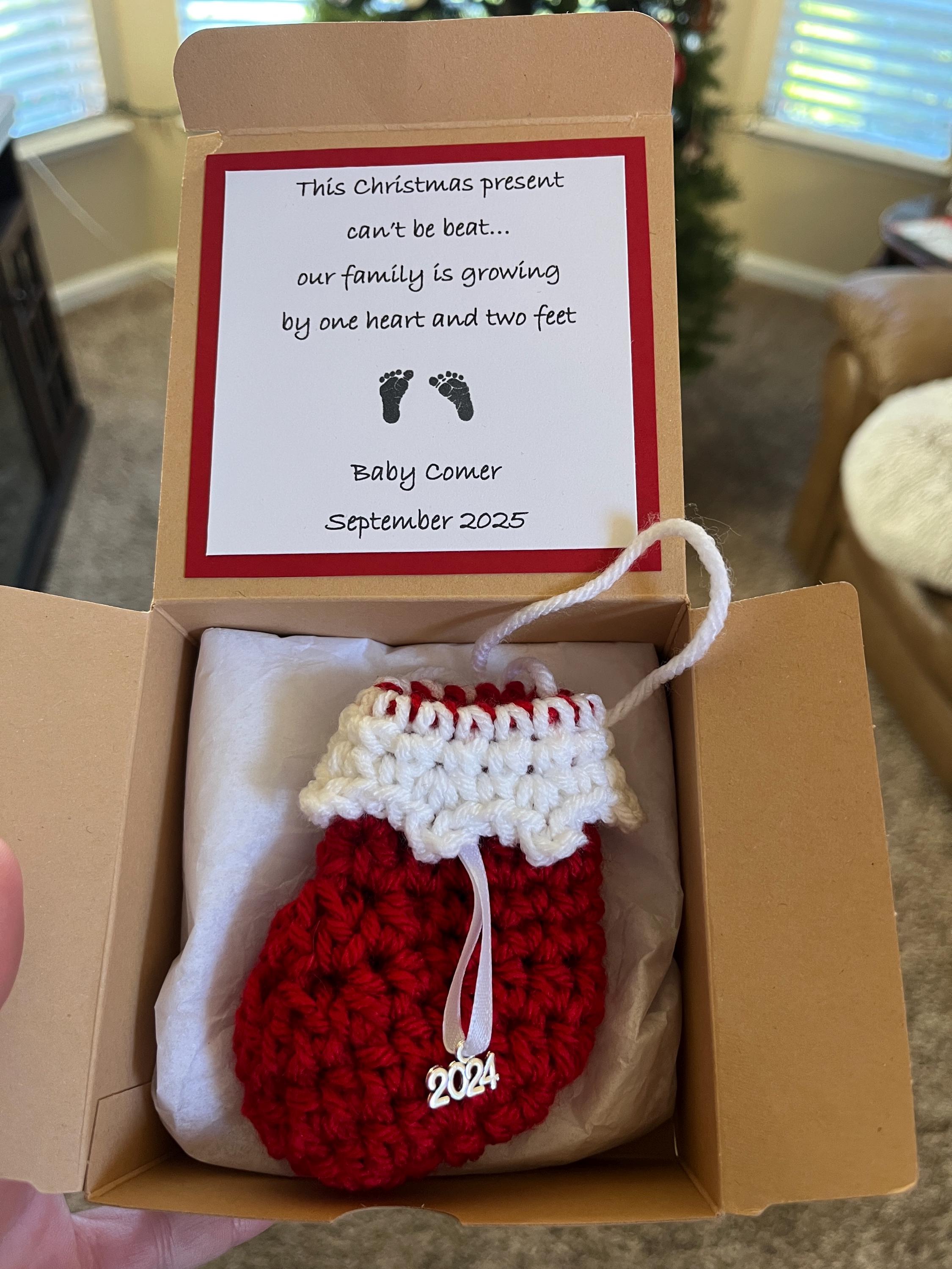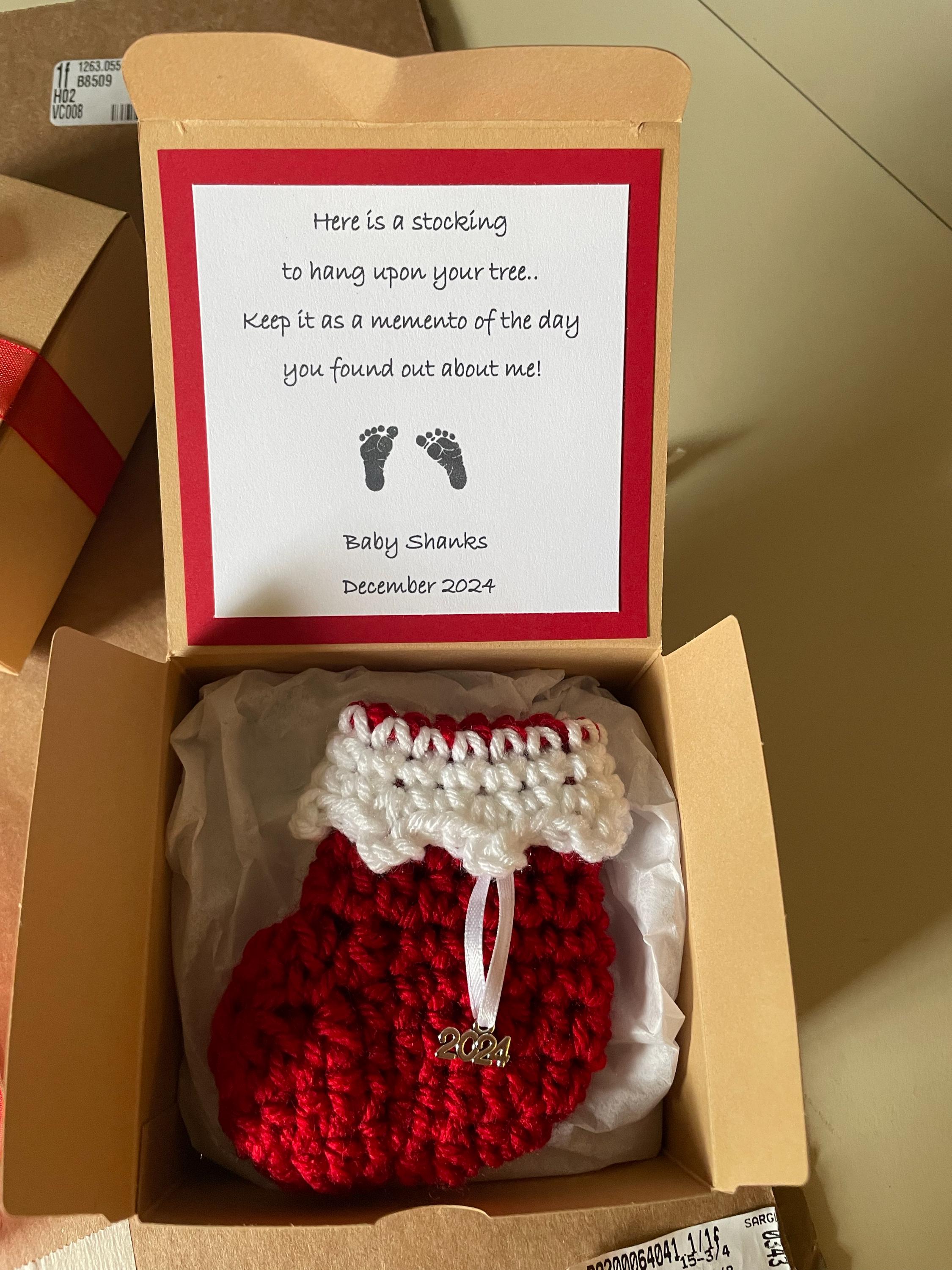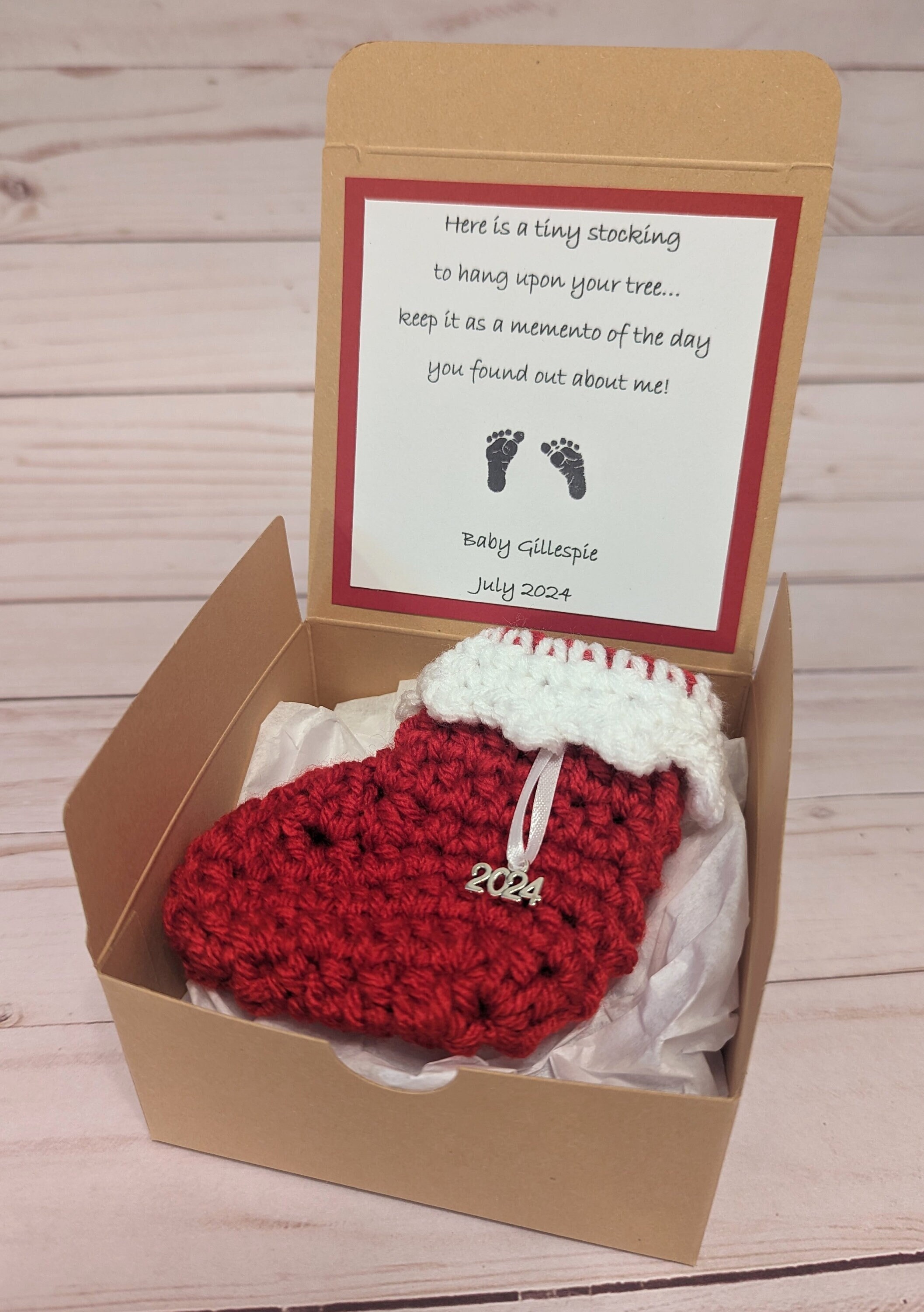 This listing includes a gift box with ribbon, the card, tissue paper and a handmade tiny stocking with a charm of your choice.