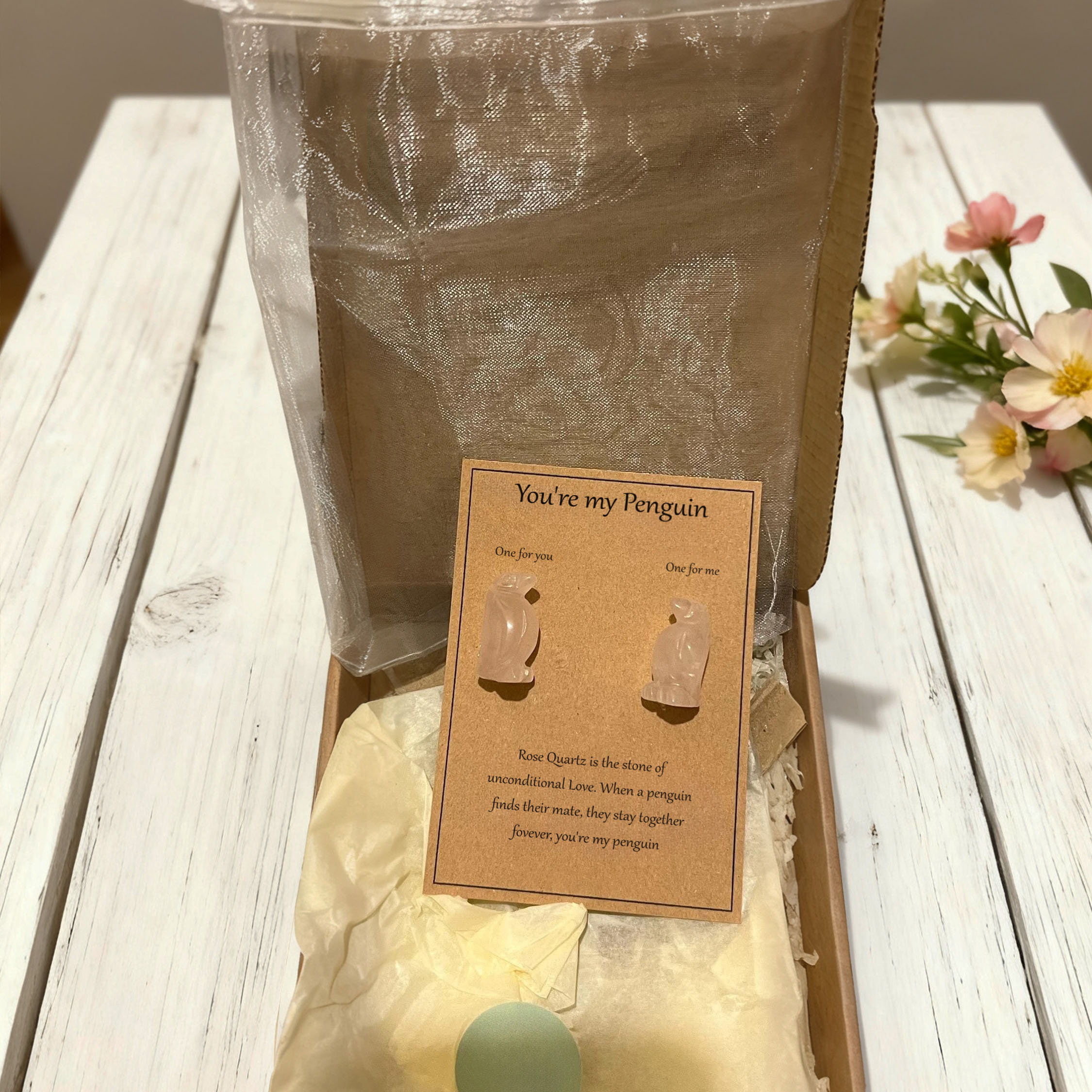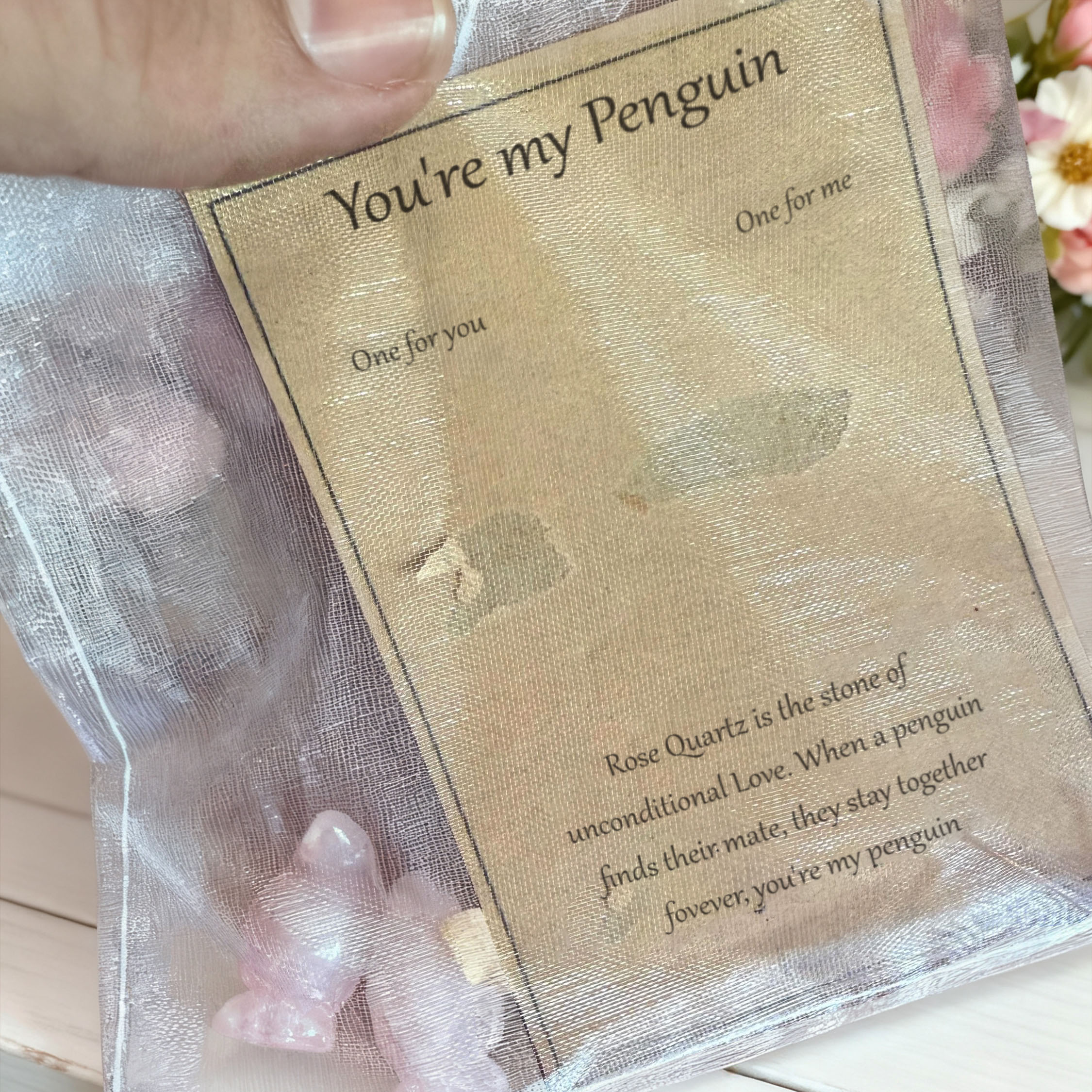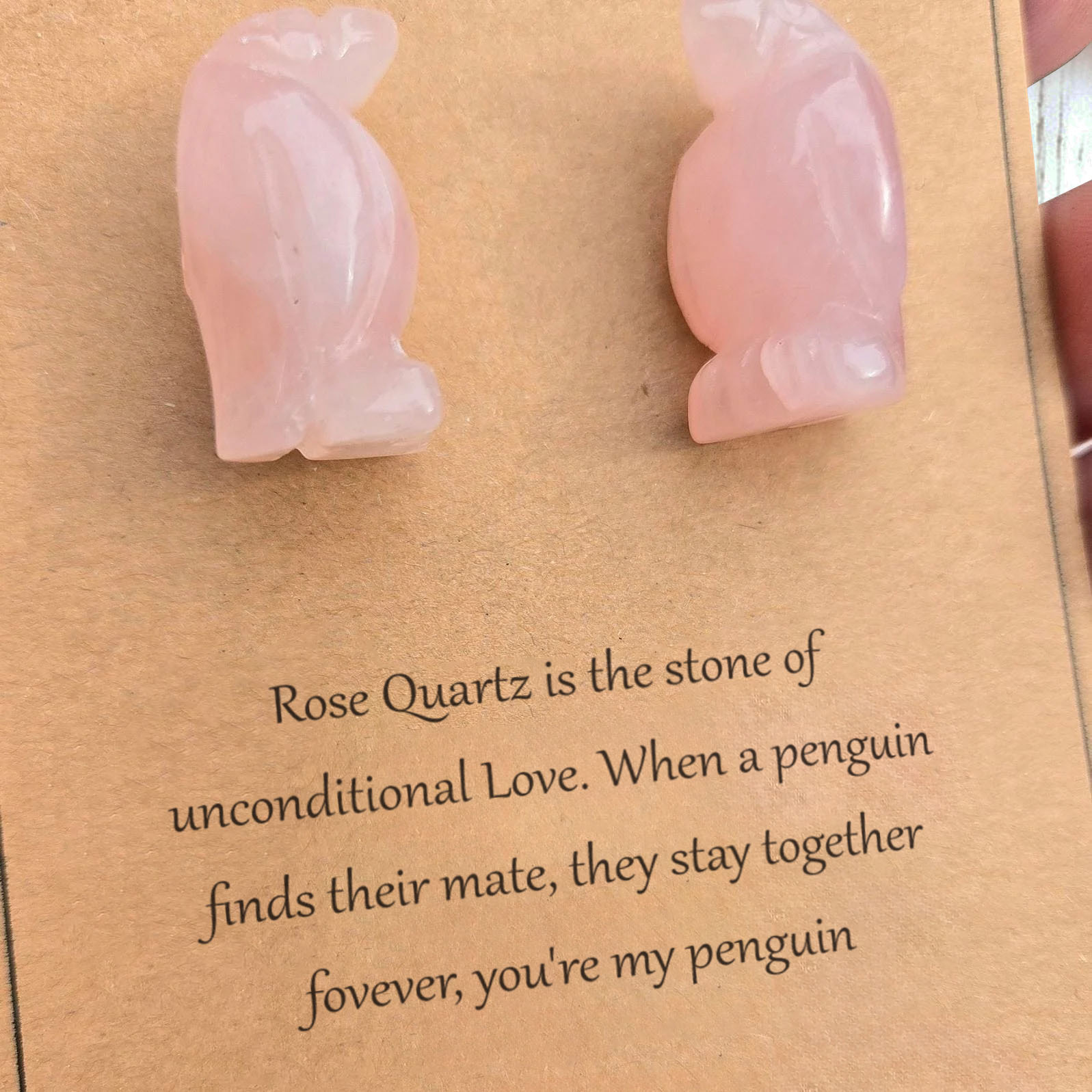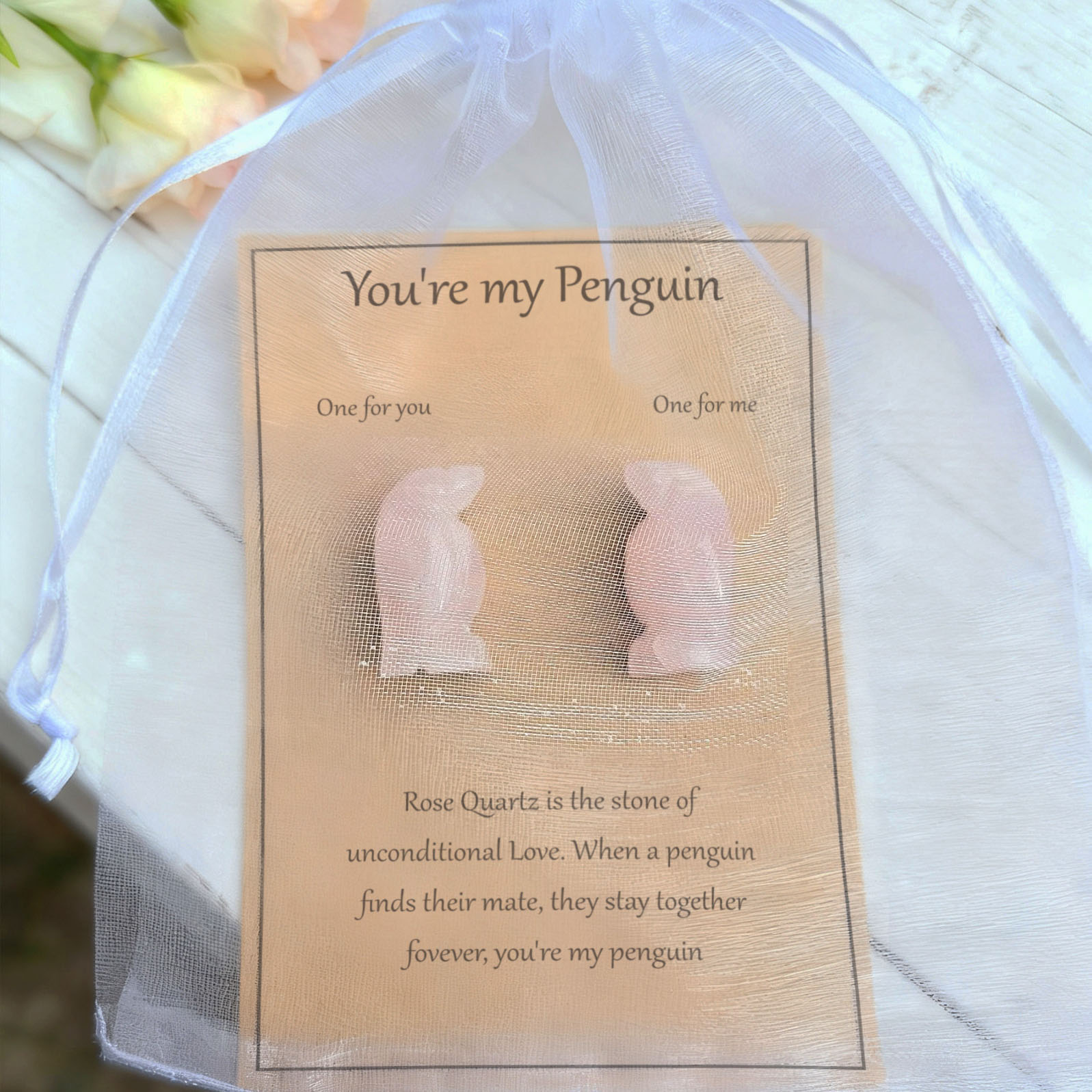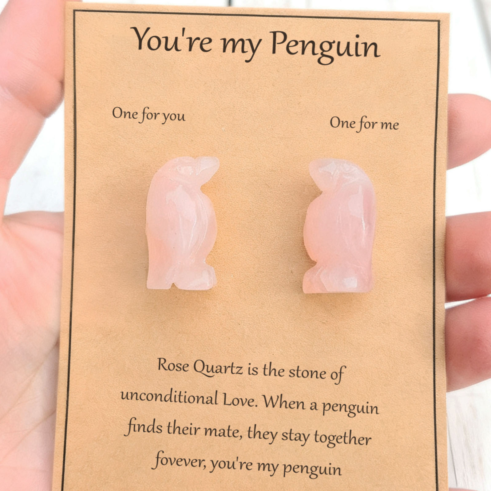 A lovely rose quartz penguin gift for your beloved. My penguin. A perfect gift for your boyfriend, girlfriend, wife, husband, or friend. Unisex set.